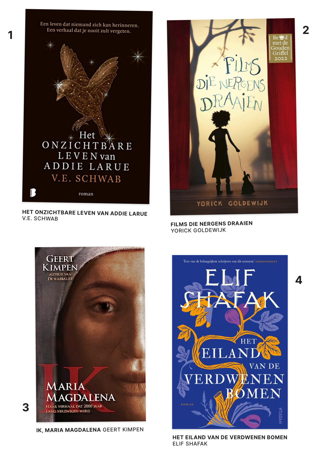 1. Het onzichtbare leven van Addie La Rue, V.E. Schwab. 'Dit jaar las ik het boek, 'Het onzichtbare leven van Addie LaRue', en werkelijk, het is prachtig, magisch, bijzonder. Ik vond het een van de mooiste boeken die ik dit jaar gelezen heb.' Birgit