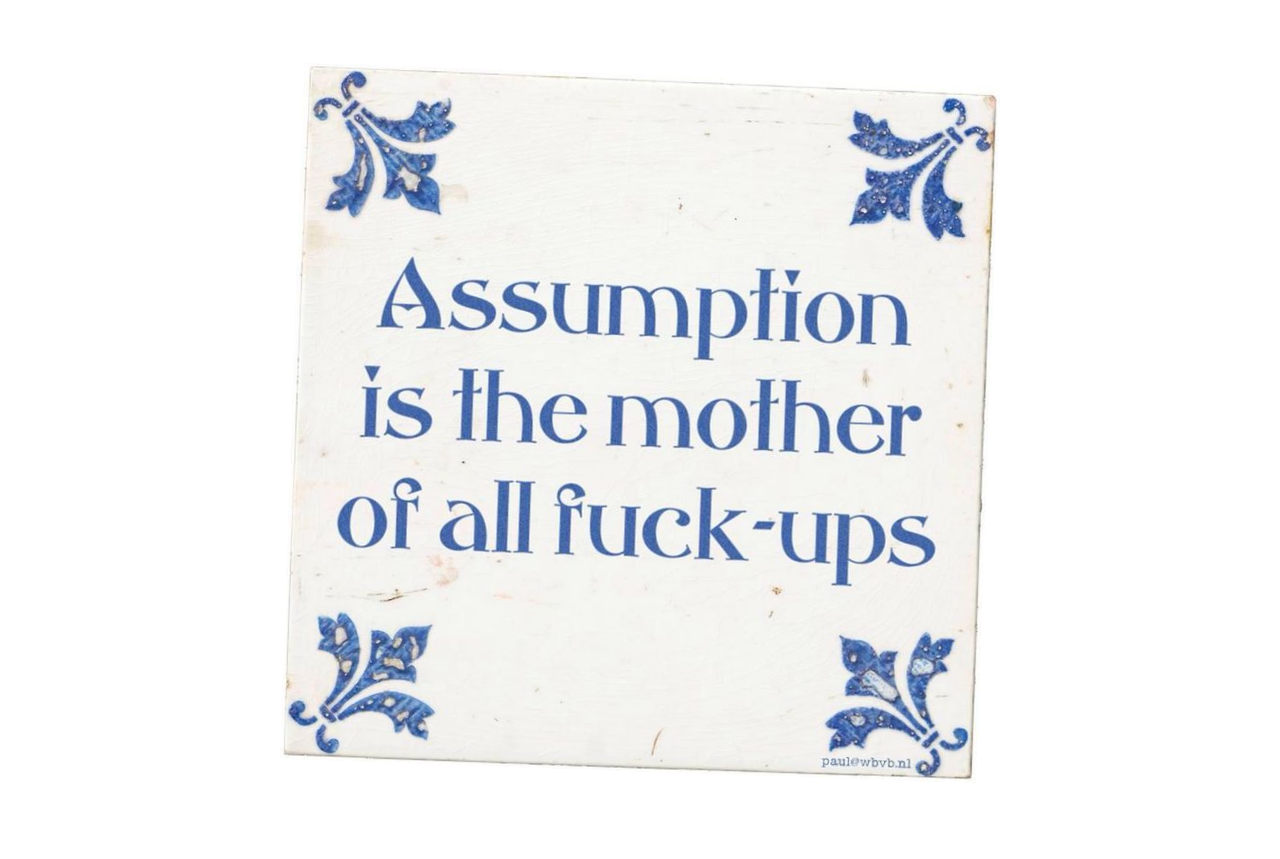 De boodschap doet me denken aan de wijsheid van wijlen boeddhistische monnik Björn Natthiko Lindeblad, wiens beroemde mantra luidde ‘I may be wrong’. Ik denk dat het een onderschatte superkracht is om te kunnen luisteren naar anderen en andere perspectieven en tegelijkertijd met een verzachtende blik naar onze eigen ideeën te kijken. Zeker als we geloven in het belang van verbinden. Daarom houd ik dit deze dagen net dat beetje extra in gedachten. Hetzelfde idee kun je volgens mij ook toepassen op aannames, want…